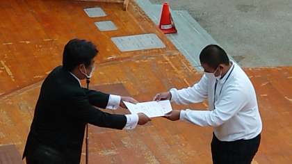 17日は、本校のパソコン部が『万博で会いましょう』をテーマに作成したプロジェクションマッピング作品が表彰を受け、展示発表をしました。
