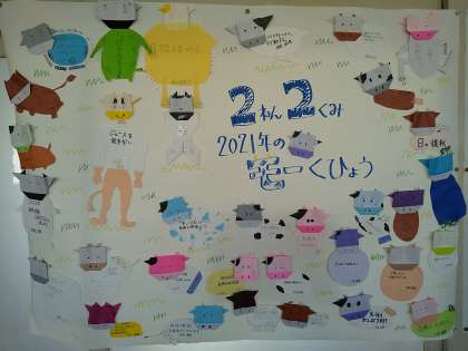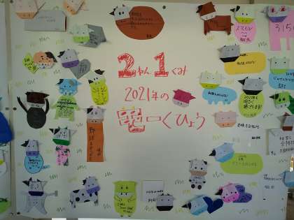 2年生の廊下に『2021年のモーくひょう』を掲示しています。