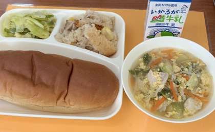 今日は、焼き豚(ぶた)、くり、しいたけの入った『中華おこわ』です。