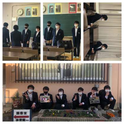 受け取った3年生は1、2年生に応援メッセージをは送り、12月にぶどうの会のメンバーと管理作業員さんで植えたお花が満開にさいていたので、花壇の前で写真を撮り終わりました。