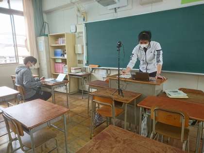 4月24日(土)に予定していた土曜授業をオンライン(接続テスト)に変更して実施しました。クラスごとに時間を設定し、「Teams」を利用してのオンライン学活をはじめ、今後のオンライン学習に向けて確認を行いました。