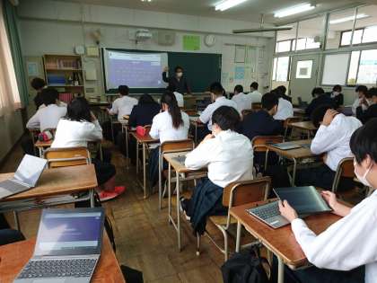 一人一台端末を活用して問題形式や映像を確認しながら学習に取り組んでいます。
