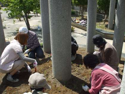 また、城北公園事務所の吉川さんたちも来校していただき、植え替えのご指導いただきました。