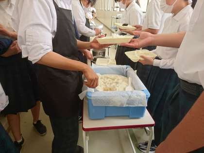大宮中学校の配膳員さん、配食の準備ありがとうございます。