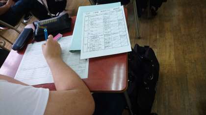 1年生は、中学生になって初めての定期テスト。テストに向けての学習計画をたて、テストにどんな問題が出るかそれぞれが出し合い、予想問題を作成し学習しました。