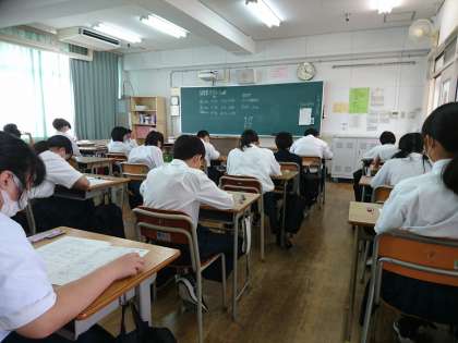 3時間目の1年生保健体育のテストの時間の様子です。