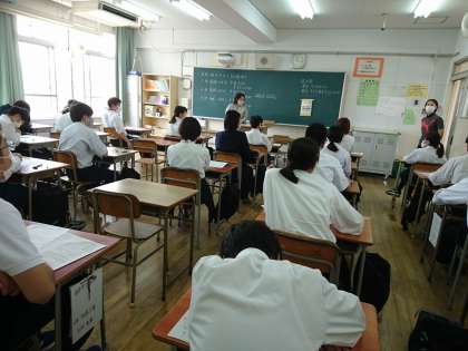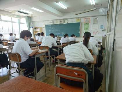3時間目の2年生保健体育のテストの時間の様子です。