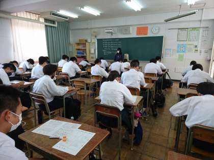 3時間目の3年生保健体育のテストの時間の様子です。