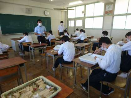 元気に登校する様子と音楽、美術の時間の様子です。この1学期間のまとめの授業をしっかり受け、学期を締めくくりました。