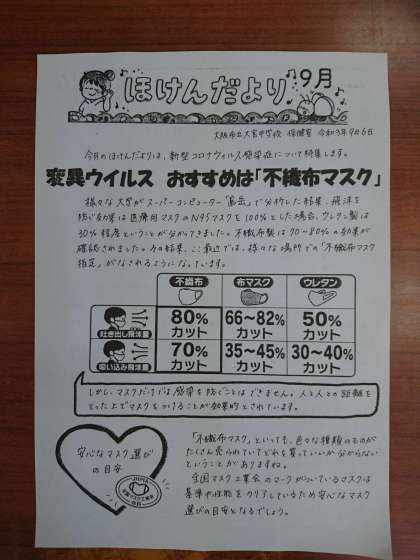 先週月曜日に、新型コロナウイルス感染症の影響による緊急下校を行いました。学校休業とは至らなかったですが、今まで以上に感染症拡大予防に取り組むことについて、校長先生より話がありました。また、保健だよりを通じて、ご家庭へも感染症拡大予防についてお知らせをしています。