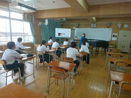 音楽の授業では、打楽器(アゴゴ—)に取り組みました。