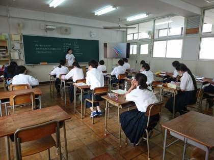 今日の授業は、布を用いた物の制作についてです。使用する道具から作成の手順について学びました。これから、自分の思いを込めた作品を作り上げてください。