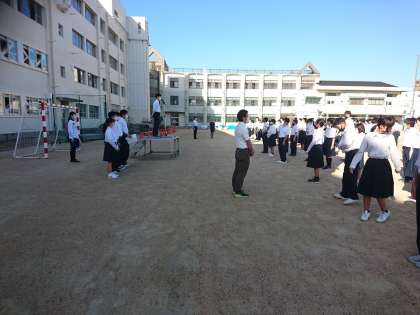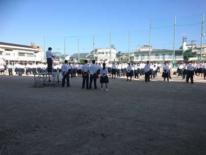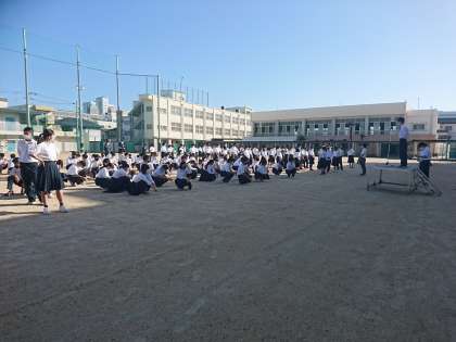 緊急事態宣言が解除され、暑さも和らいできた中、7月12日(月)以来に運動場での全校集会を行うことができました。