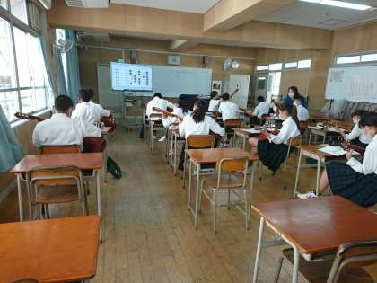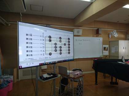 2年生の音楽の授業で、ギターに取り組んでいます。