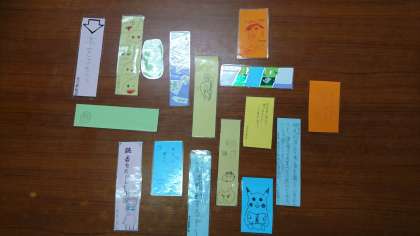文化委員会で秋の読書に向けて、たくさんの本を読んでもらうために、しおりを作成しました。