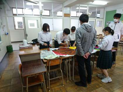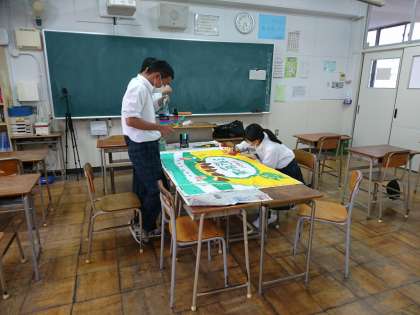 体育大会当日に向けて、学級旗の仕上げに入っています。