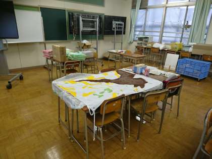体育大会学級旗作成中 1年生
