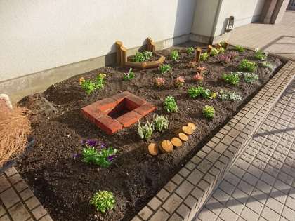 正門入ってすぐのところに、管理作業員さんとお手伝いをしてくれている生徒で花壇の整備をしてくれています。