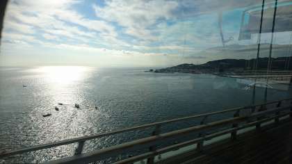 明石海峡大橋を通過し、淡路ハイウェイオアシスでトイレ休憩です。この後、渦の道に向かいます。
