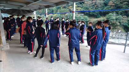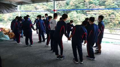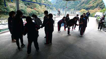 1組は、チームビルディングです。グループ・クラスで協力して盛り上がっています。終了したらお土産購入です。