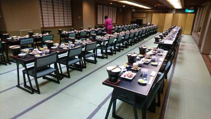 ほぼ、予定通りにホテルへ到着しました。午後の活動の終わりに雨が降ってきたため、入館式は夕食時に行うこととなりました。