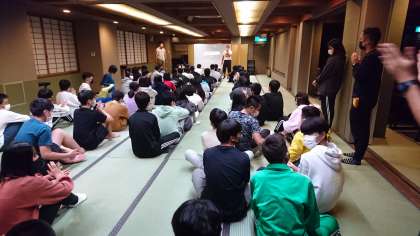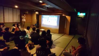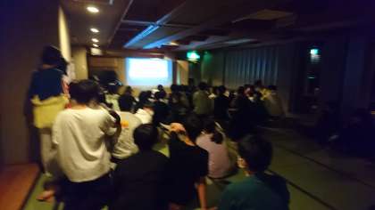 夕食後に入浴とフリータイムの時間を過ごし、全体集合です。みんなで体育大会のダンスと集団行動の映像を見ました。自分達の演技を見て、3年生の力を改めて確認しました。最後に大きな拍手が沸きあがりました。