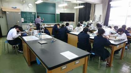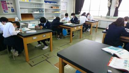 1年生、1時間目の理科の実験・実験器具の確認の様子です。