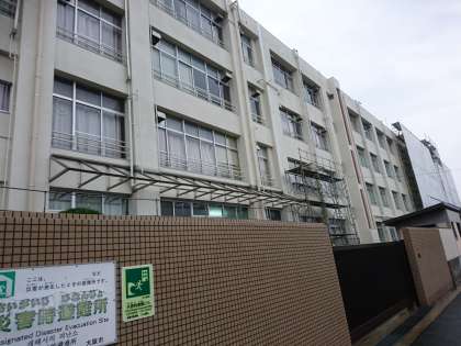 南側の校舎の外壁工事が進み、シートと足場の撤去が始まりました。