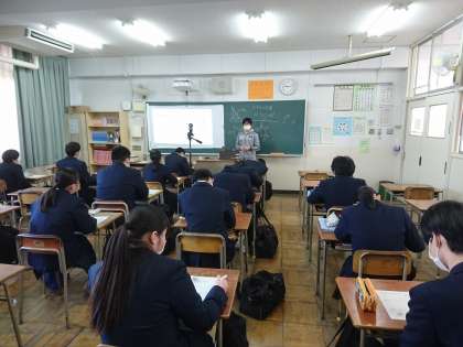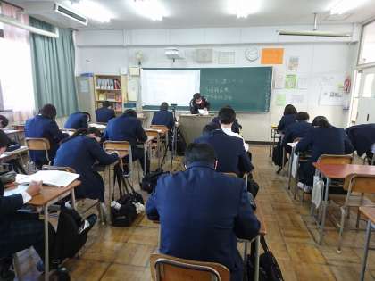 来週1月26日(水)〜1月28日(金)の中学校最後のテスト、学年末テストに向けて学習に取り組んでいます。3年1組は、数学で三角形の辺の長さについて、3年2組は社会で円高・円安について学習しています。