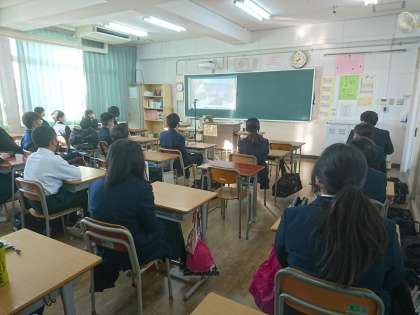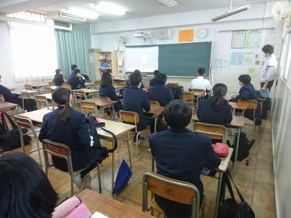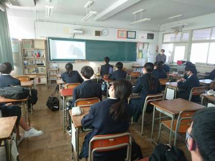 放送での全校集会が行われ、感染症対策にこれまで以上に気を配るよう健康教育部と養護教諭の先生が協力して作成した動画(手洗い・換気)を各学級で確認しました。