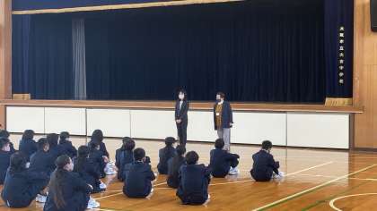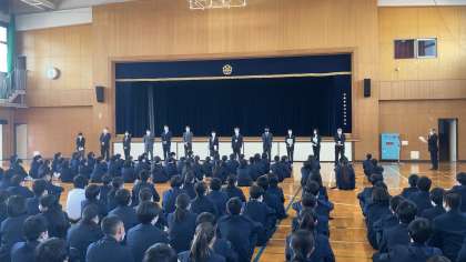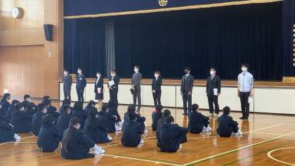 校長先生の話、転任の教職員の方々の紹介、本年度の教職員の方々の紹介が行われました。