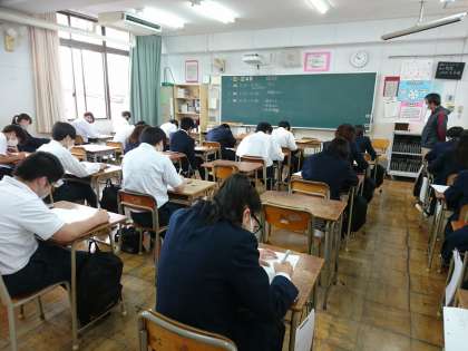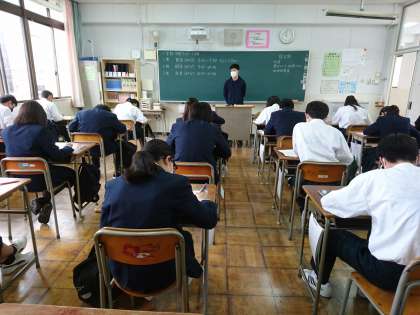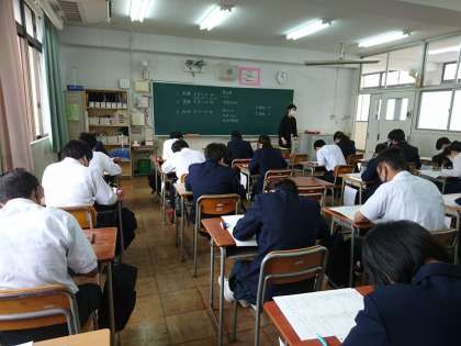 3年生の2時間目、国語の中間テストの様子です。