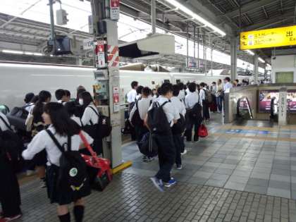 待ちに待った修学旅行がスタートしました。8時40分に参加予定者全員が集合し、先程9時40分静岡に向けて新幹線で出発しました。