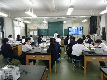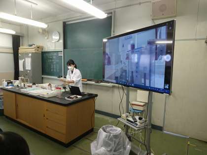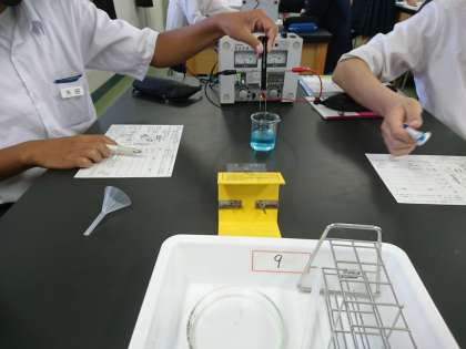 塩化銅水溶液と塩酸を電気分解する実験を行いました。