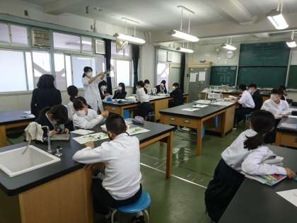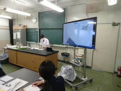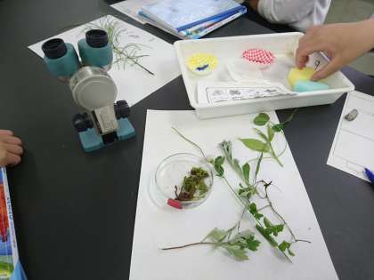 被子植物の葉でハンコを作り、葉脈の様子を観察する実験を行いました。