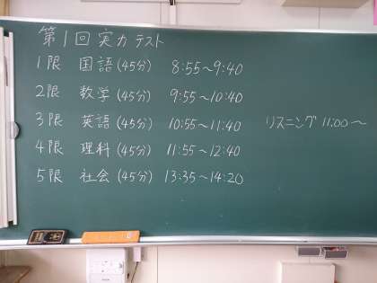 国語・数学・英語・理科・社会の時間割で、これまでに習った範囲の問題で実施されました。