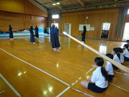 男子バスケットボール部、女子バスケットボール部、剣道部の体験入部の様子です。