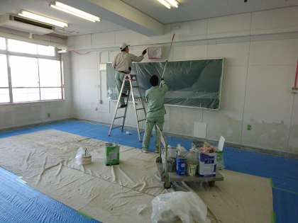 先日、2年生ミーティングルームの整備が完了しましたが、昨日も1年生ミーティングルームの整備を管理作業員さんにしていただいています。