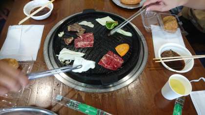 少し遅れて牧歌の里に到着しました。楽しみにしていたバーベキューです。いただきます。