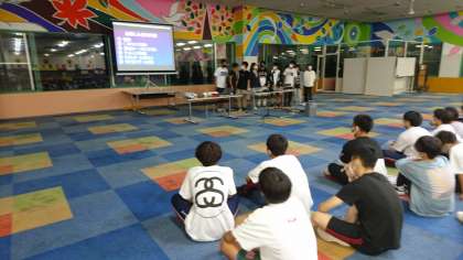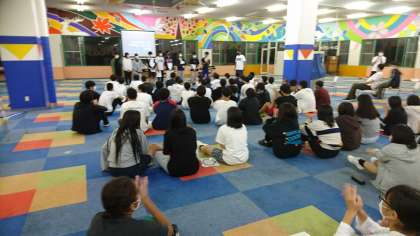 レクリエーション活動が始まりました。お楽しみ会として夏休み前から修学旅行実行委員の人たちで内容を考え、今日の進行を進めてくれています。