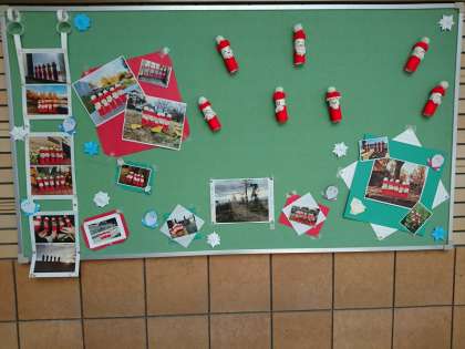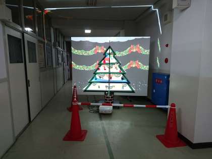 正門玄関を入ってすぐ右側の掲示板に、家庭科部がクリスマスをテーマにした作品を展示してくれました。また、パソコン部は3Dマッピングクリスマスバージョンの作品展示に取り組んでいます。