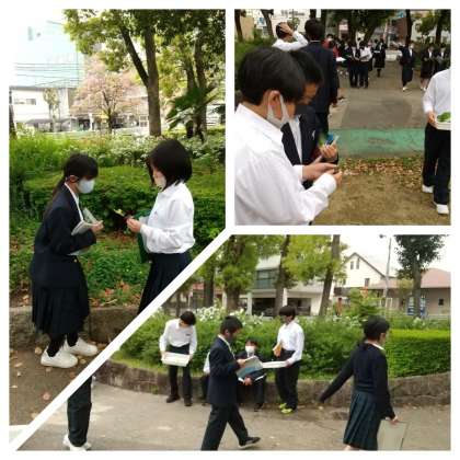1年生が城北公園へ、春の植物の観察に出かけました。