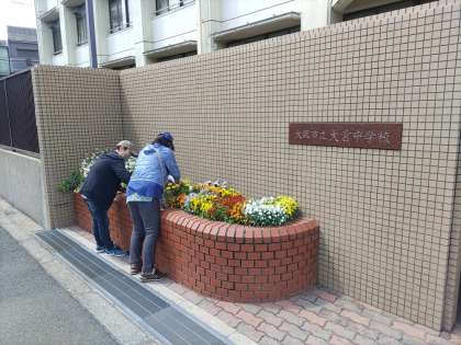 本日、令和5年度最初の緑化活動が行われました。あたたかくなり花がとてもきれいに咲いています。お近くにこられた際は、正門の花壇をぜひご覧ください。