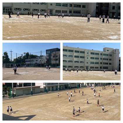 テスト終了後、グラウンドへのにがりまきを行いました。