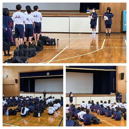体育館で出発式を行いました。