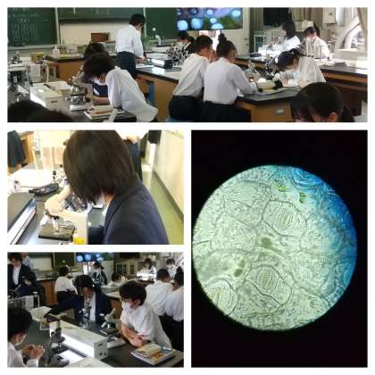 理科室で、ツユクサの気孔観察と、ヤブツバキの道管の観察をしました。