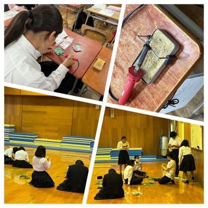 家庭科では、子どもの視野メガネで小さい子の目線を体験してキャッチボールをしています。が、上手くとれません。