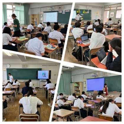 本校の1年生は2クラスなのですが、この時間は4つの教室に分かれて学習をしています。