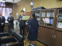 本日、全校集会で後期生徒会と各生徒専門委員会の認証式を行いました。新生徒会長の2年生男子生徒は「前期の生徒会活動を土台にして新しい大宮中学校を築いていきたい」と抱負を述べていました。