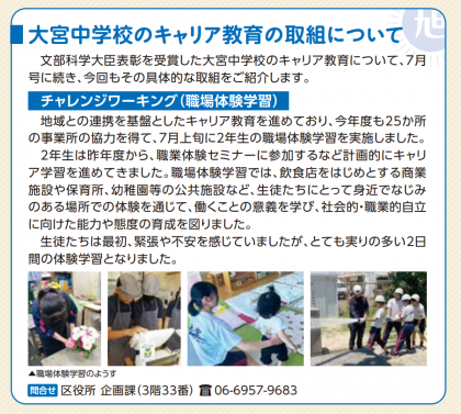 旭区の広報誌「広報あさひ」の9月号に、本校のキャリア教育についての記事を掲載していただきました。